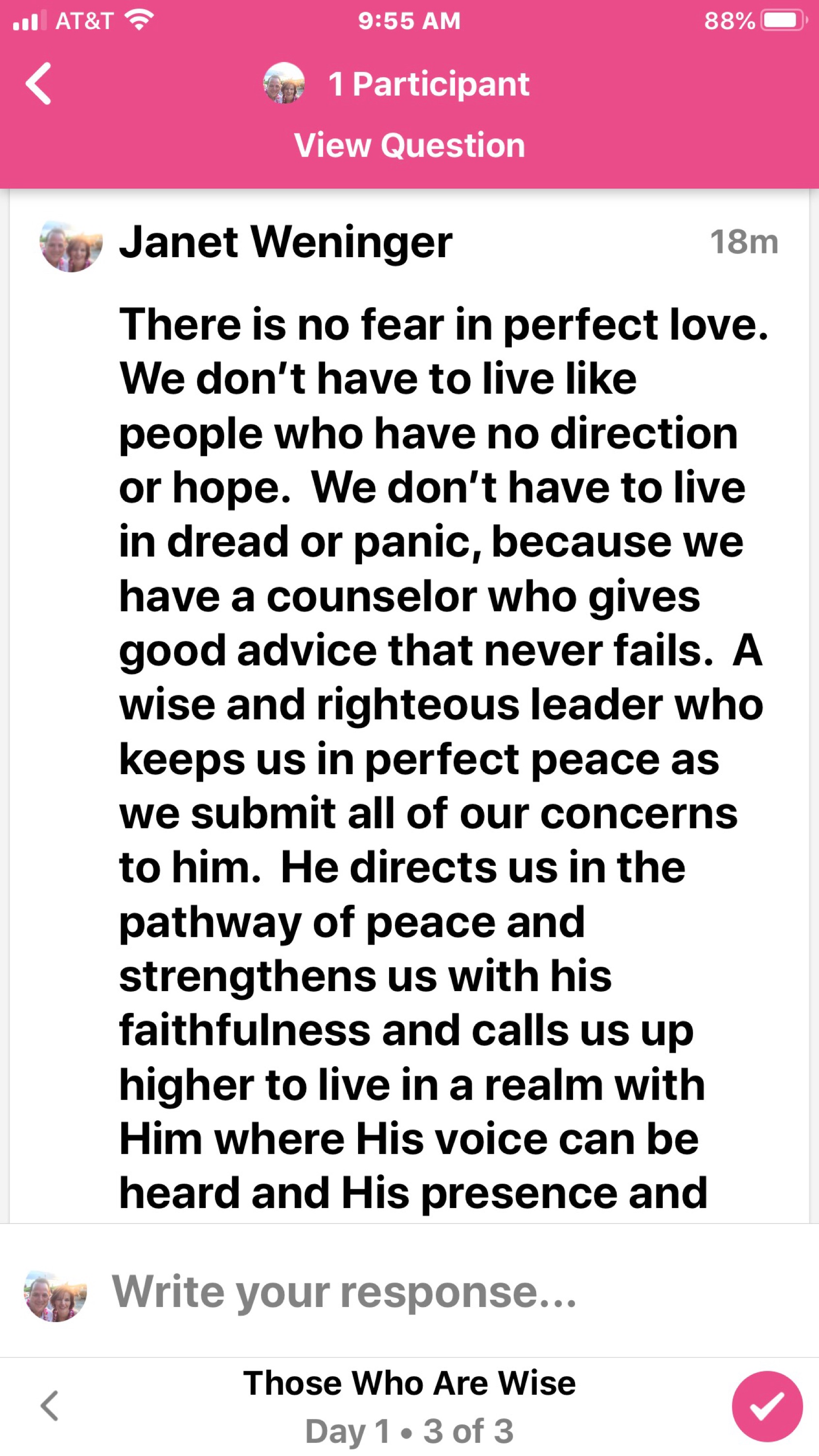 “There is no fear in love, but perfect love casts out fear. For fear has to do with punishment, and whoever fears has not been perfected in love.”